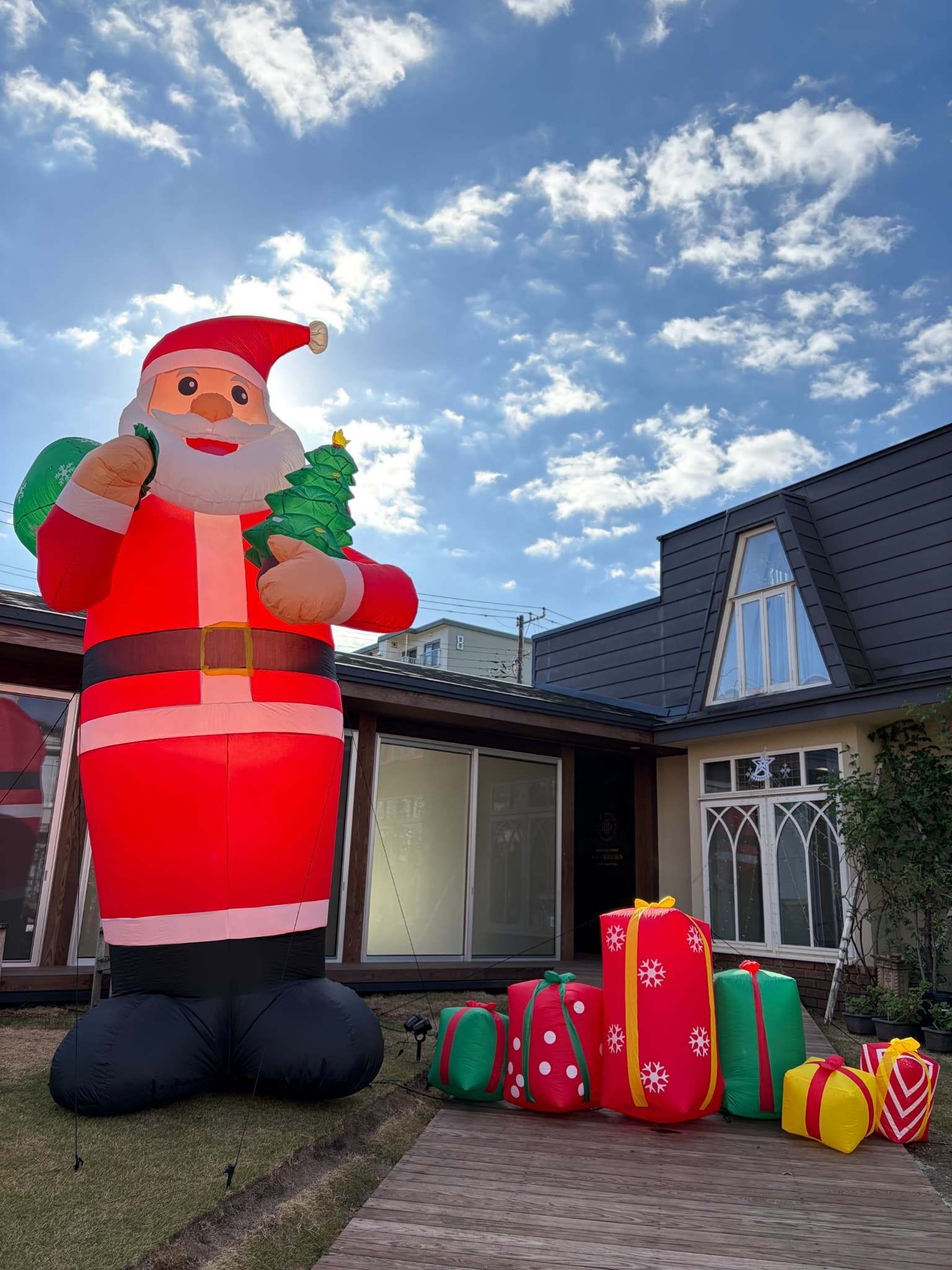 いそべ歯科のお庭に、特大サイズのサンタさんが今年も遊びに来てくれました👏🏻