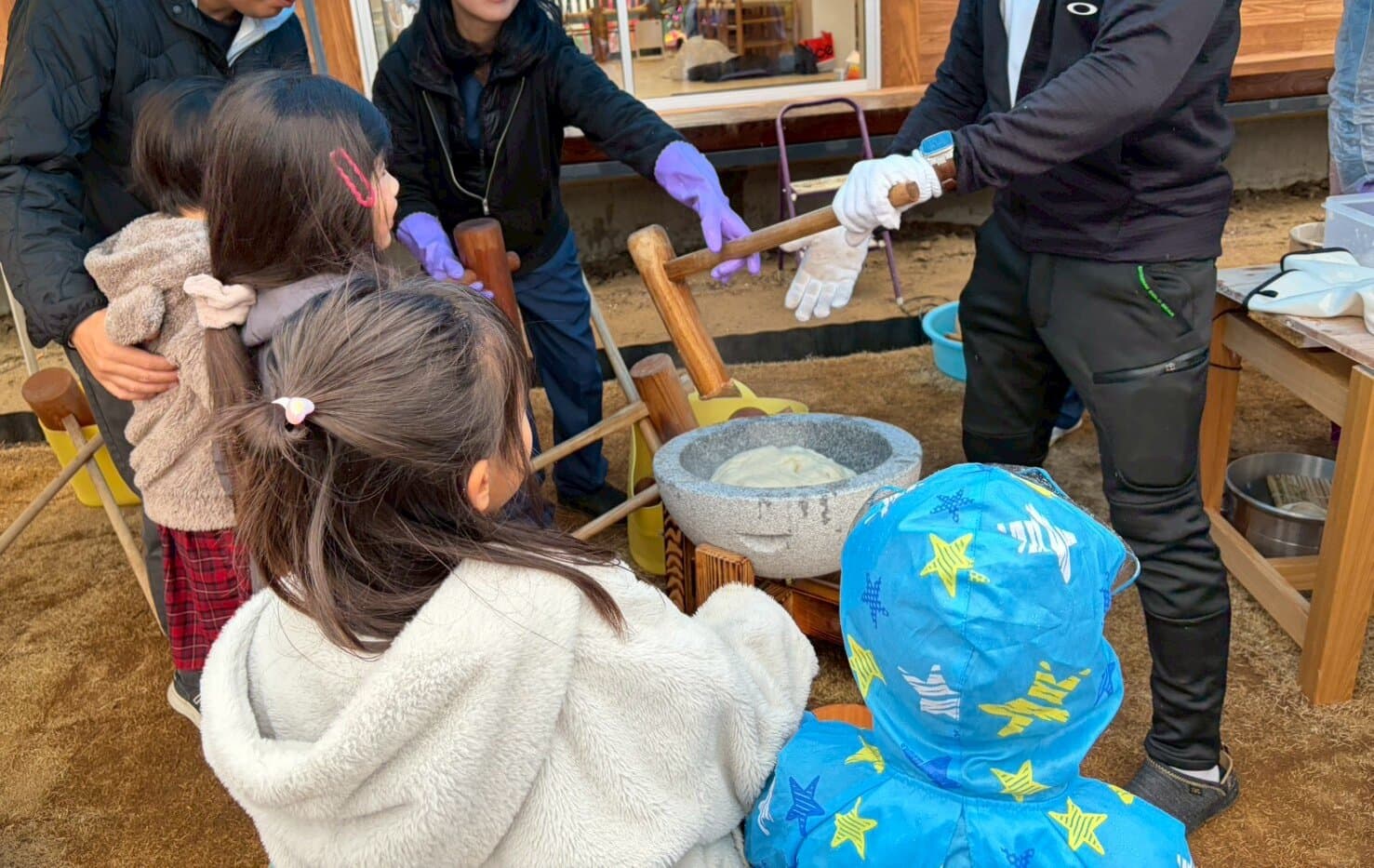 元気いっぱいに餅つきを楽しむ子どもたちの姿や、