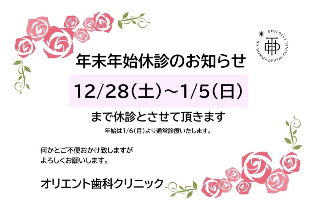 12/28(土)~1/5(月)まで休診とさせていただきます。