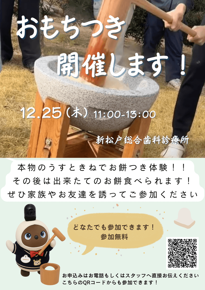 本物の杵と白で楽しむ、おもちつき大会を開催いたします!